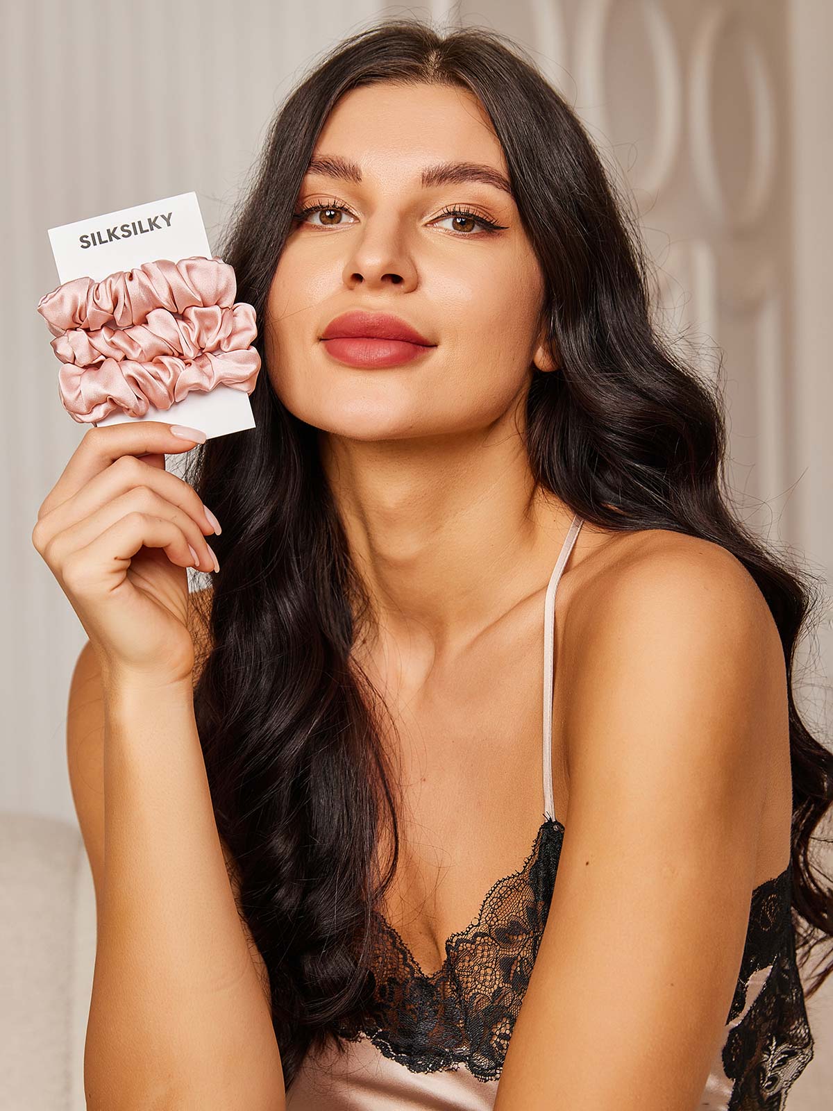 3Pcs Pure Silk Midnight Scrunchies - Regular - 2cm