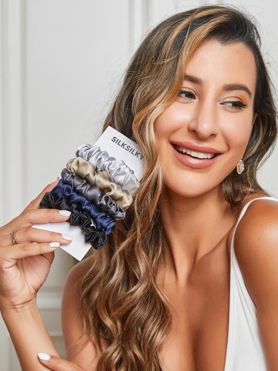 5Pcs Pure Silk Midnight Scrunchies - Regular - 2cm