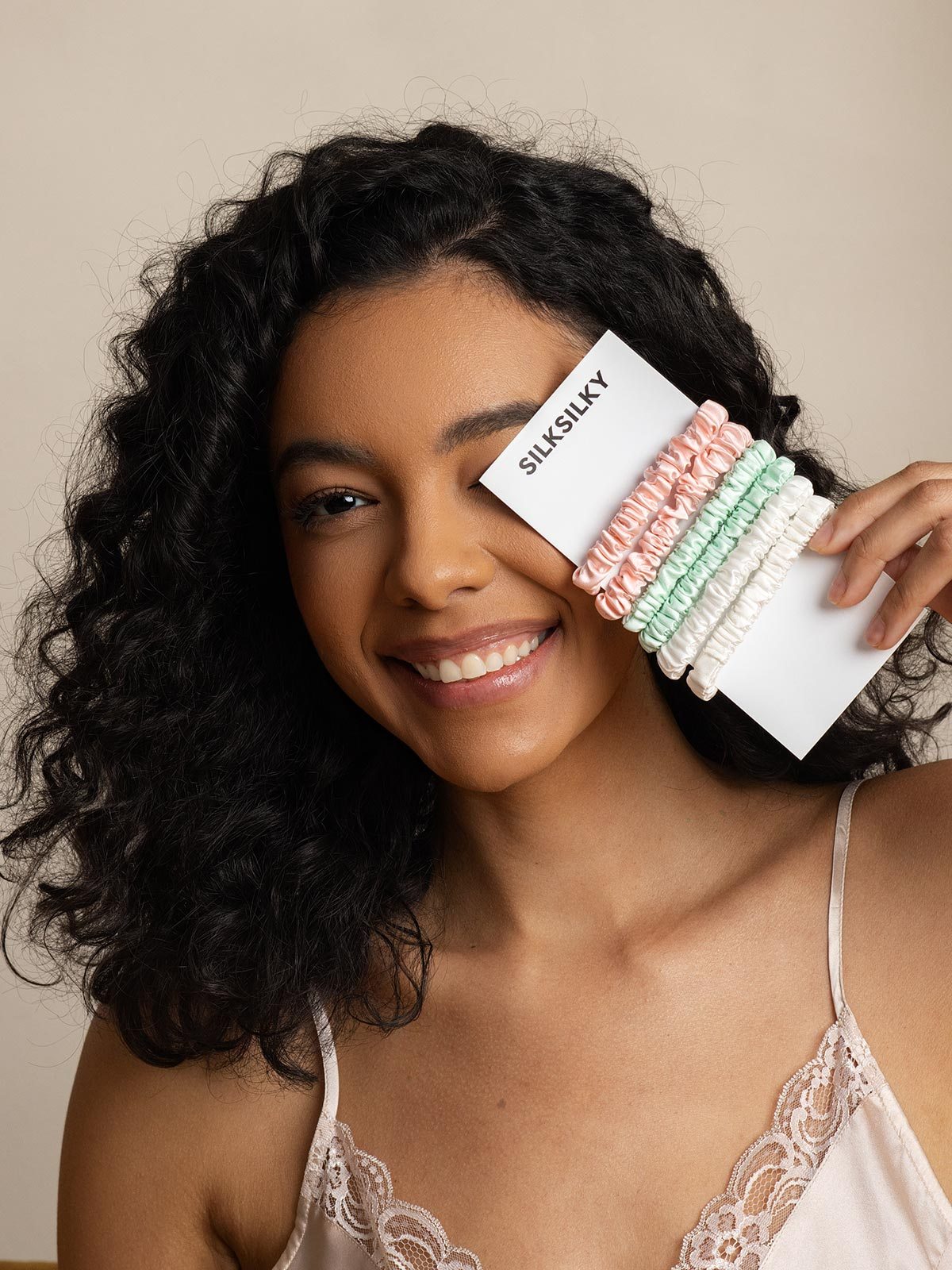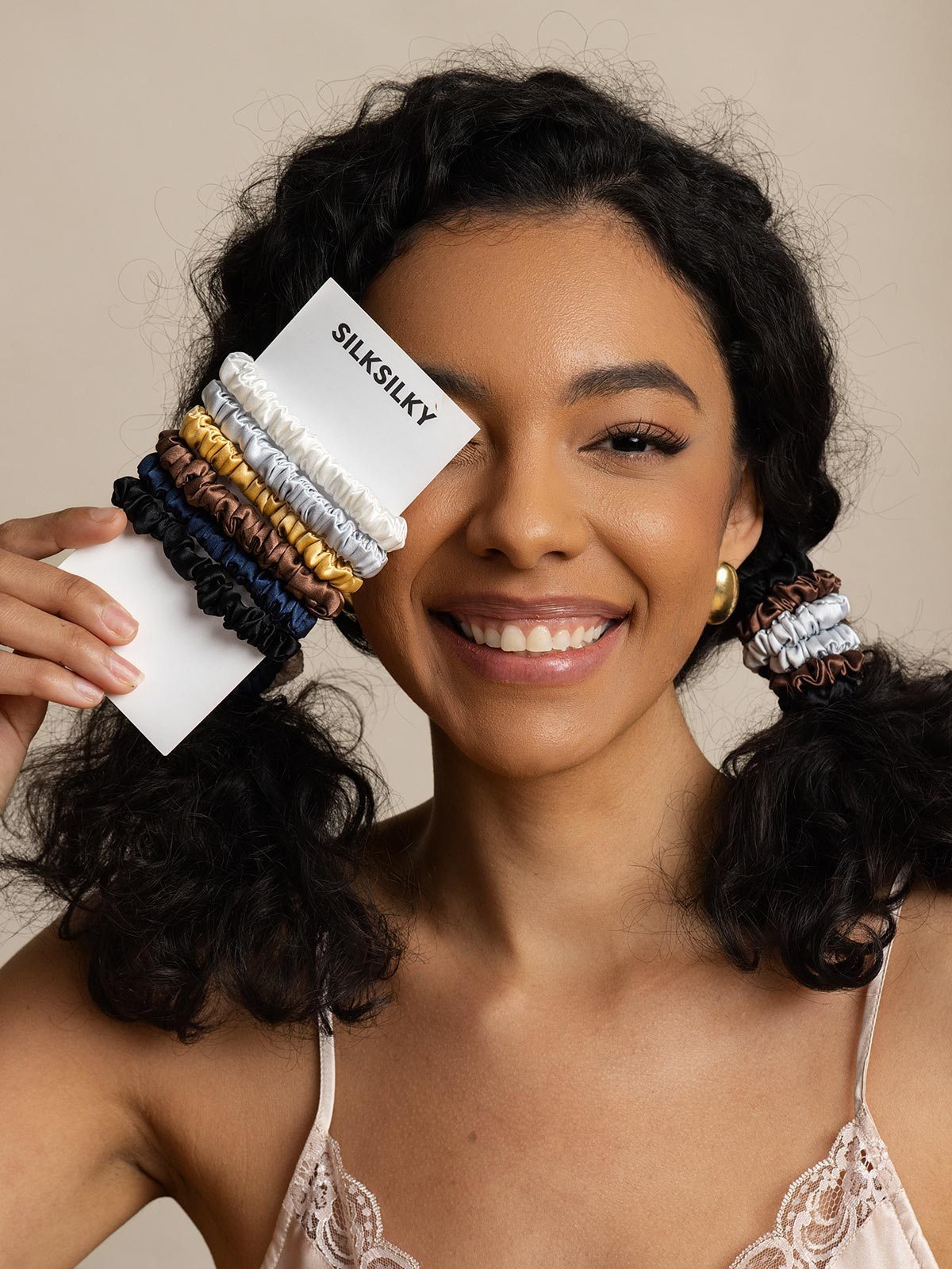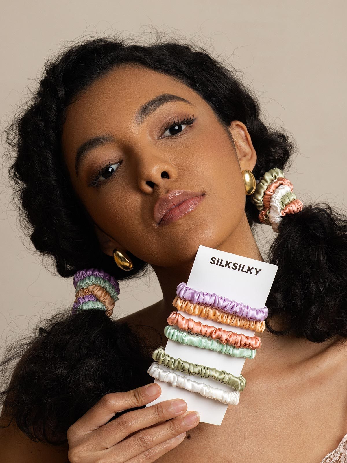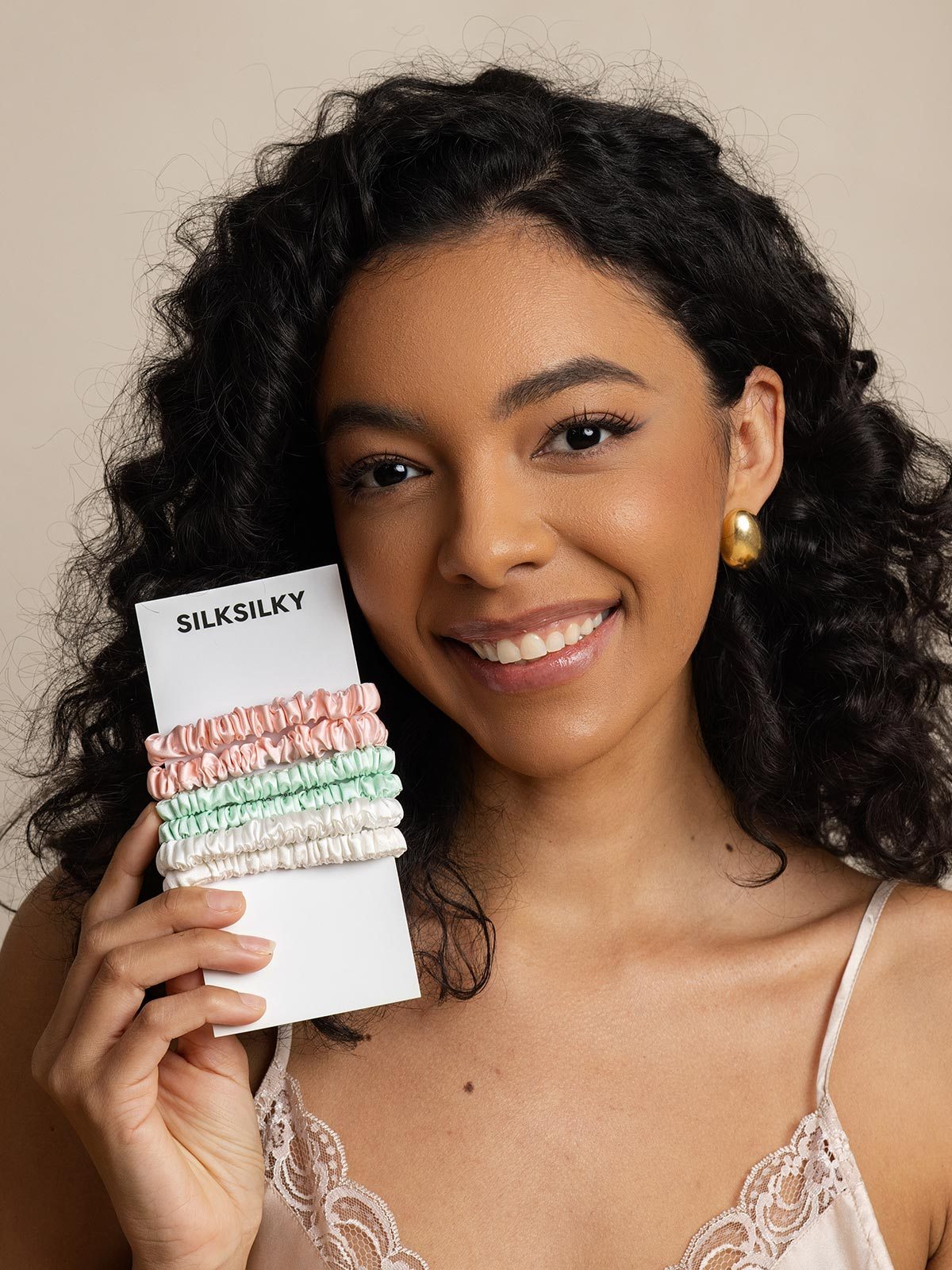 6Pcs Bundle Pure Silk Skinny Hair Scrunchies - 1cm