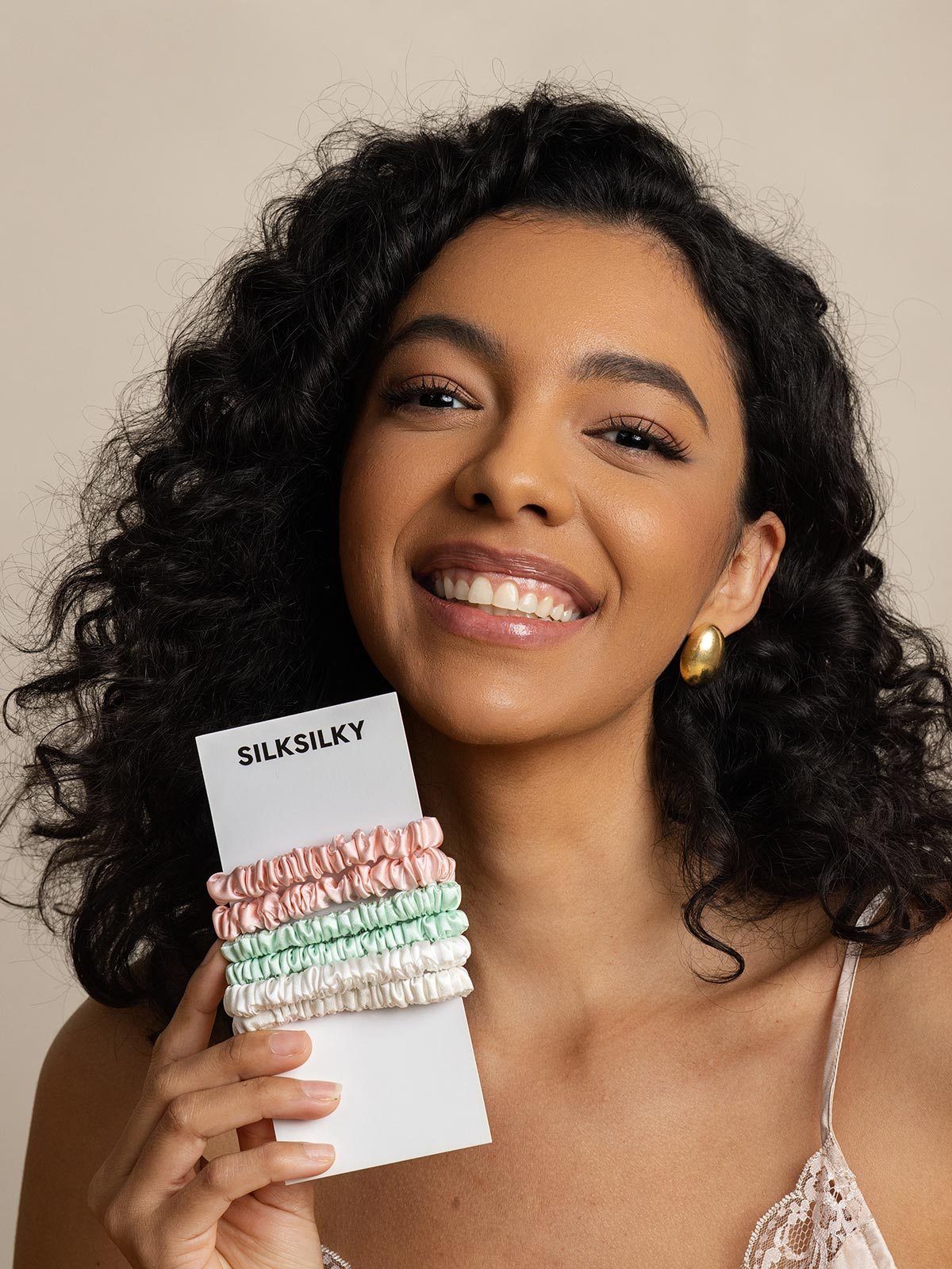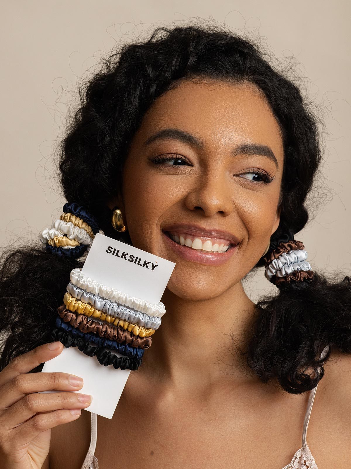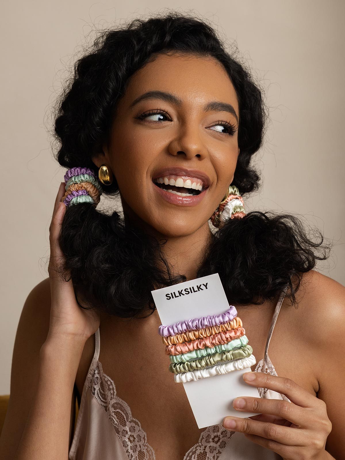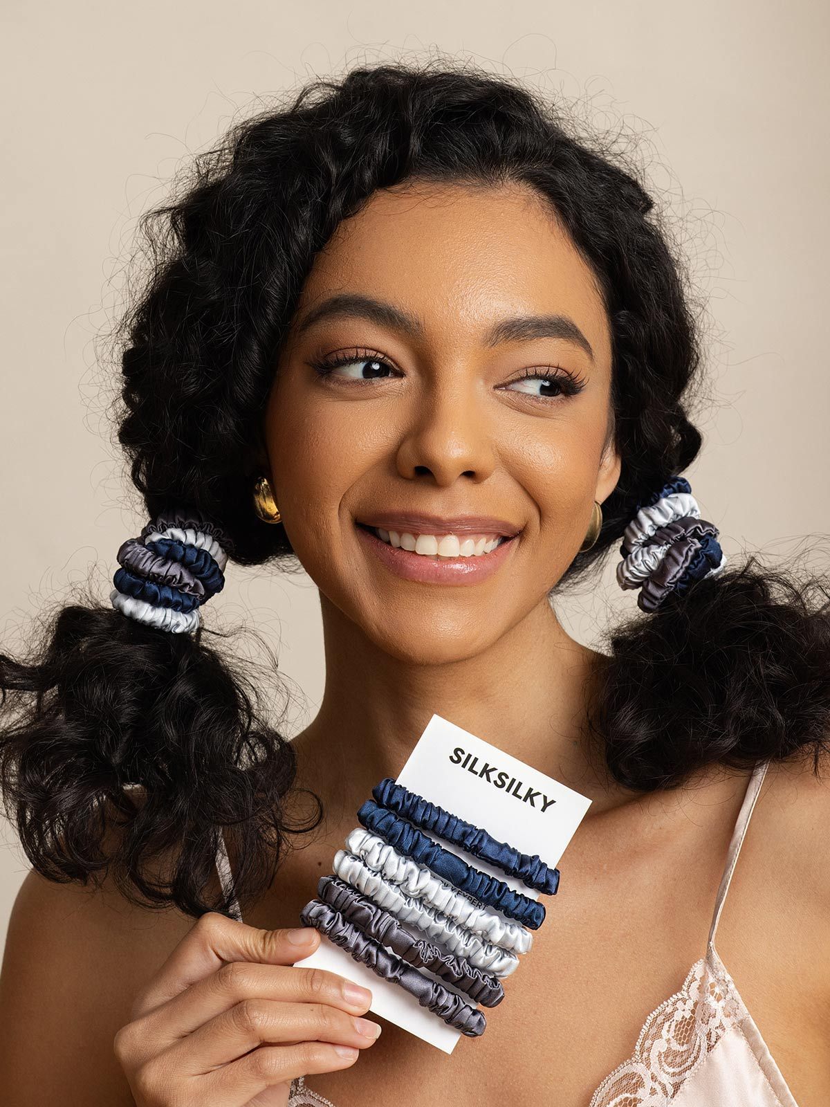 6Pcs Bundle Pure Silk Skinny Hair Scrunchies - 1cm