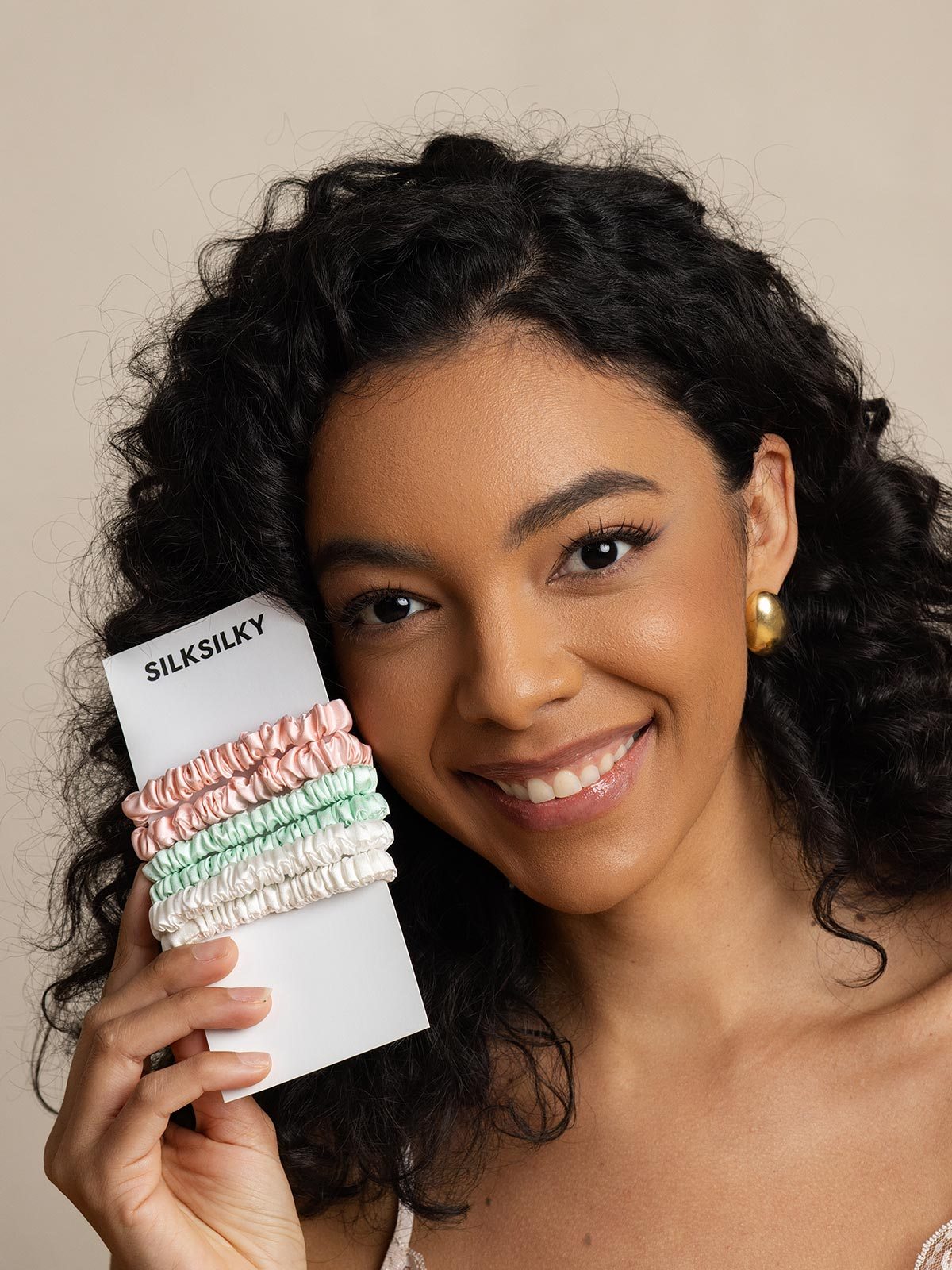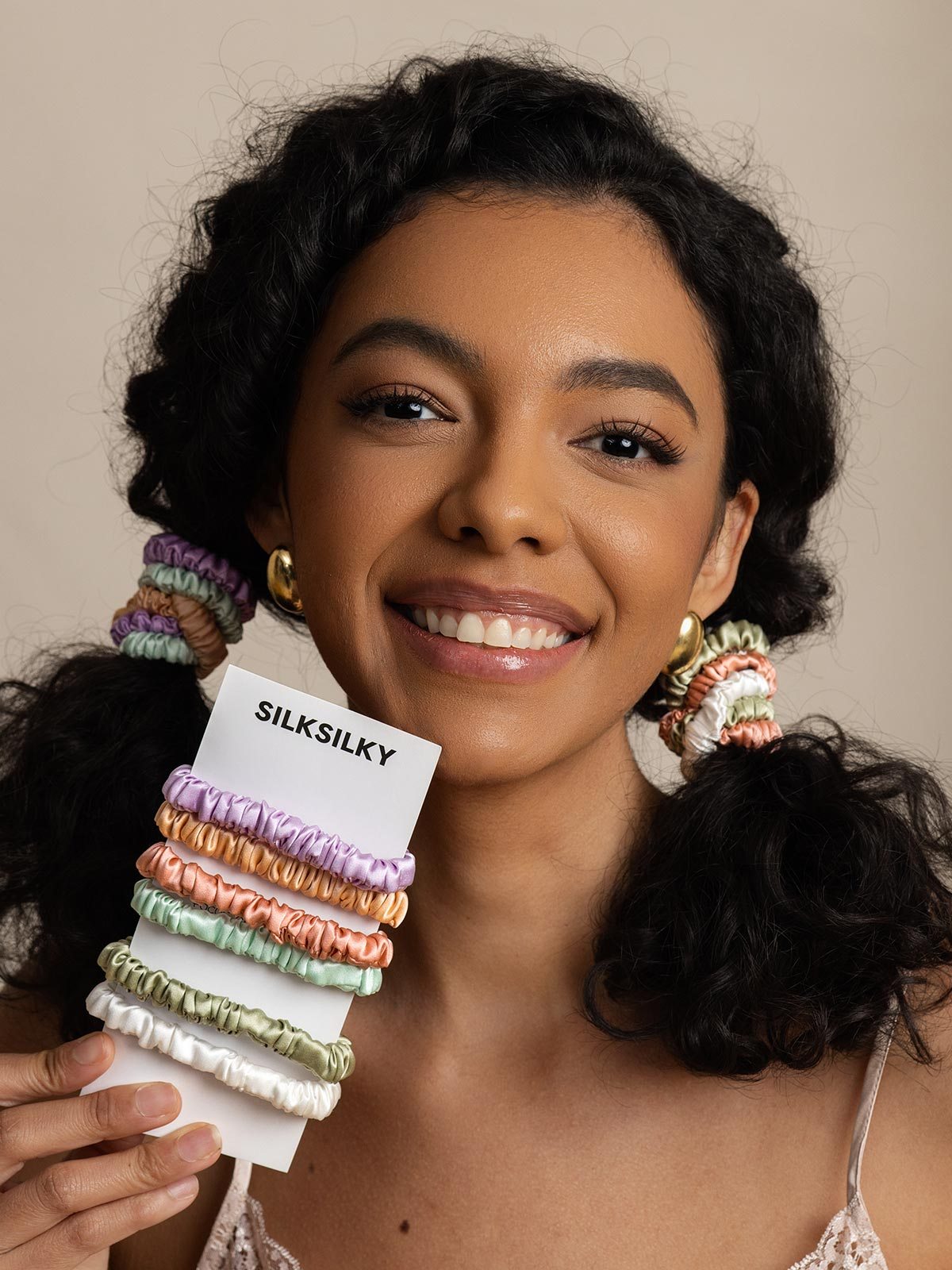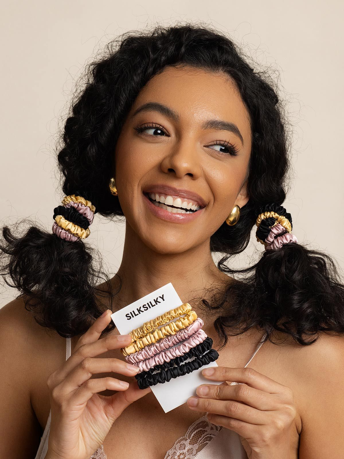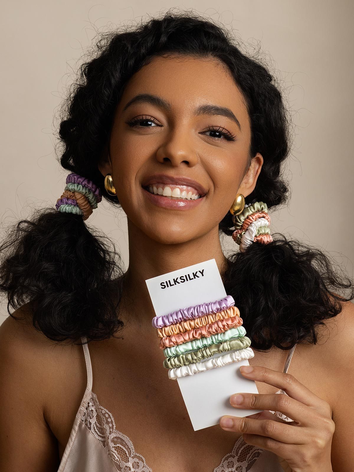 6Pcs Bundle Pure Silk Skinny Hair Scrunchies - 1cm