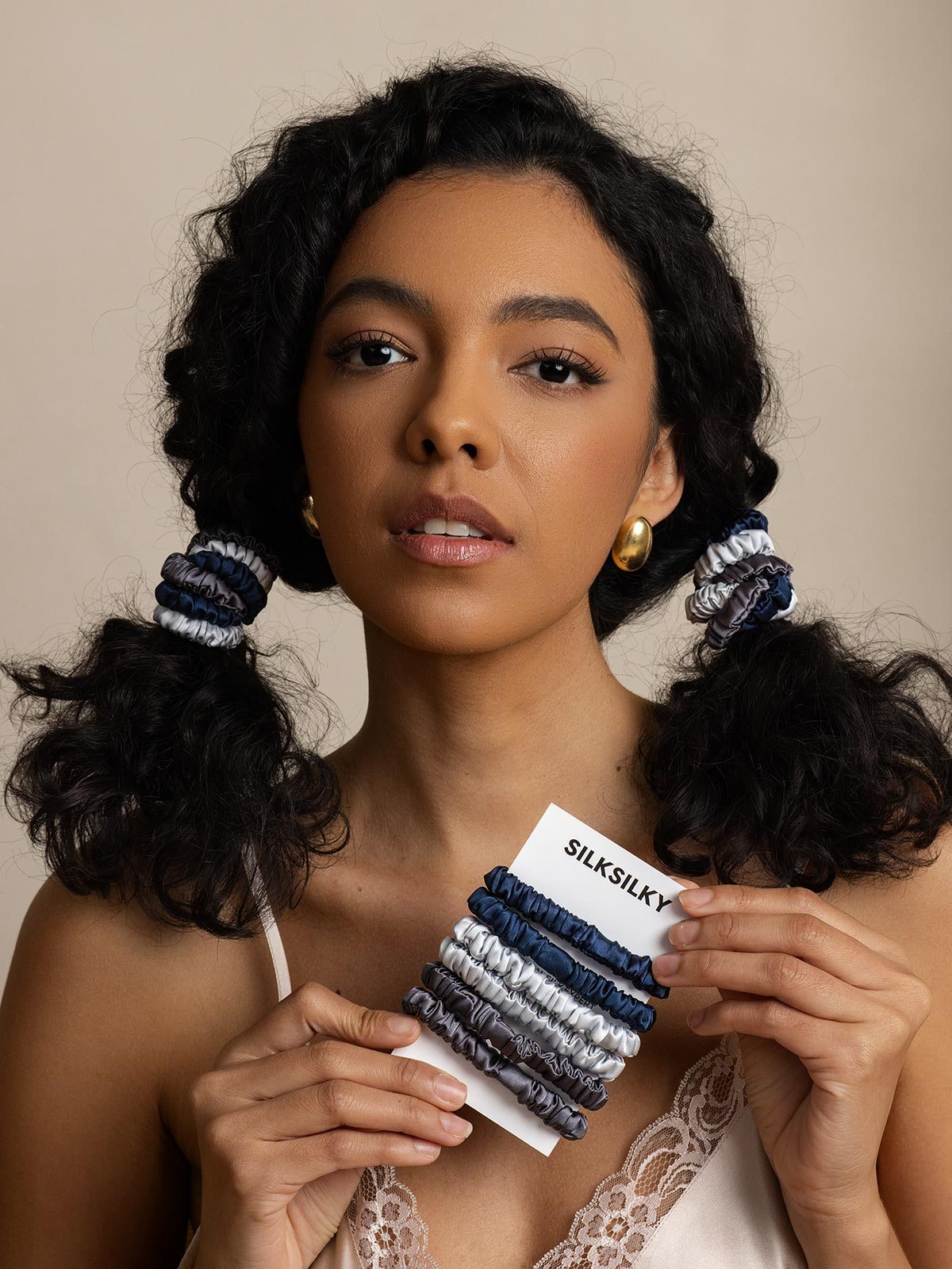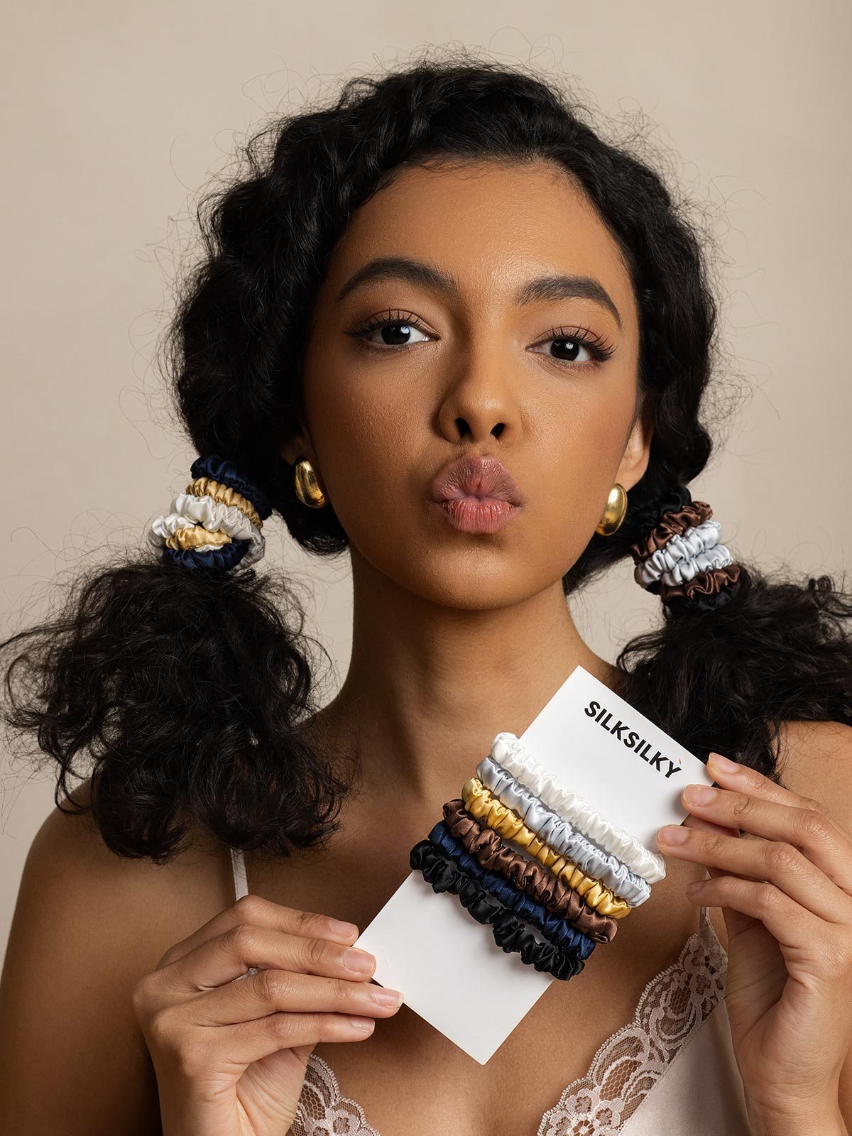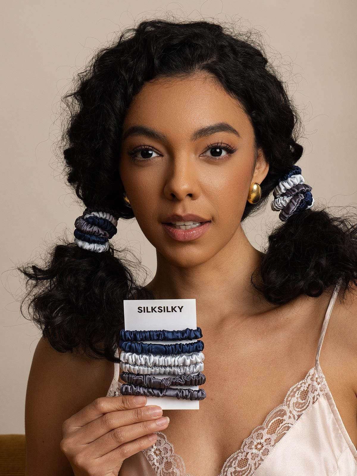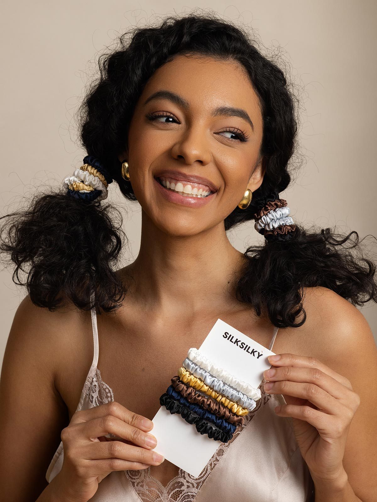6Pcs Bundle Pure Silk Skinny Hair Scrunchies - 1cm