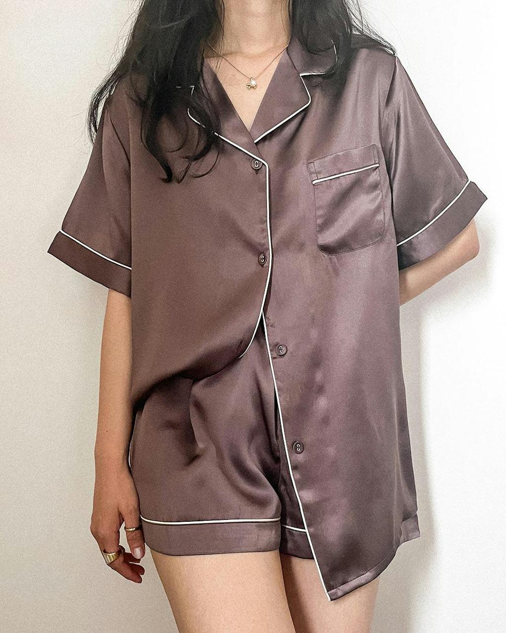 Women's Pure Silk Short Sleeve Notch Collar Pyjamas Set