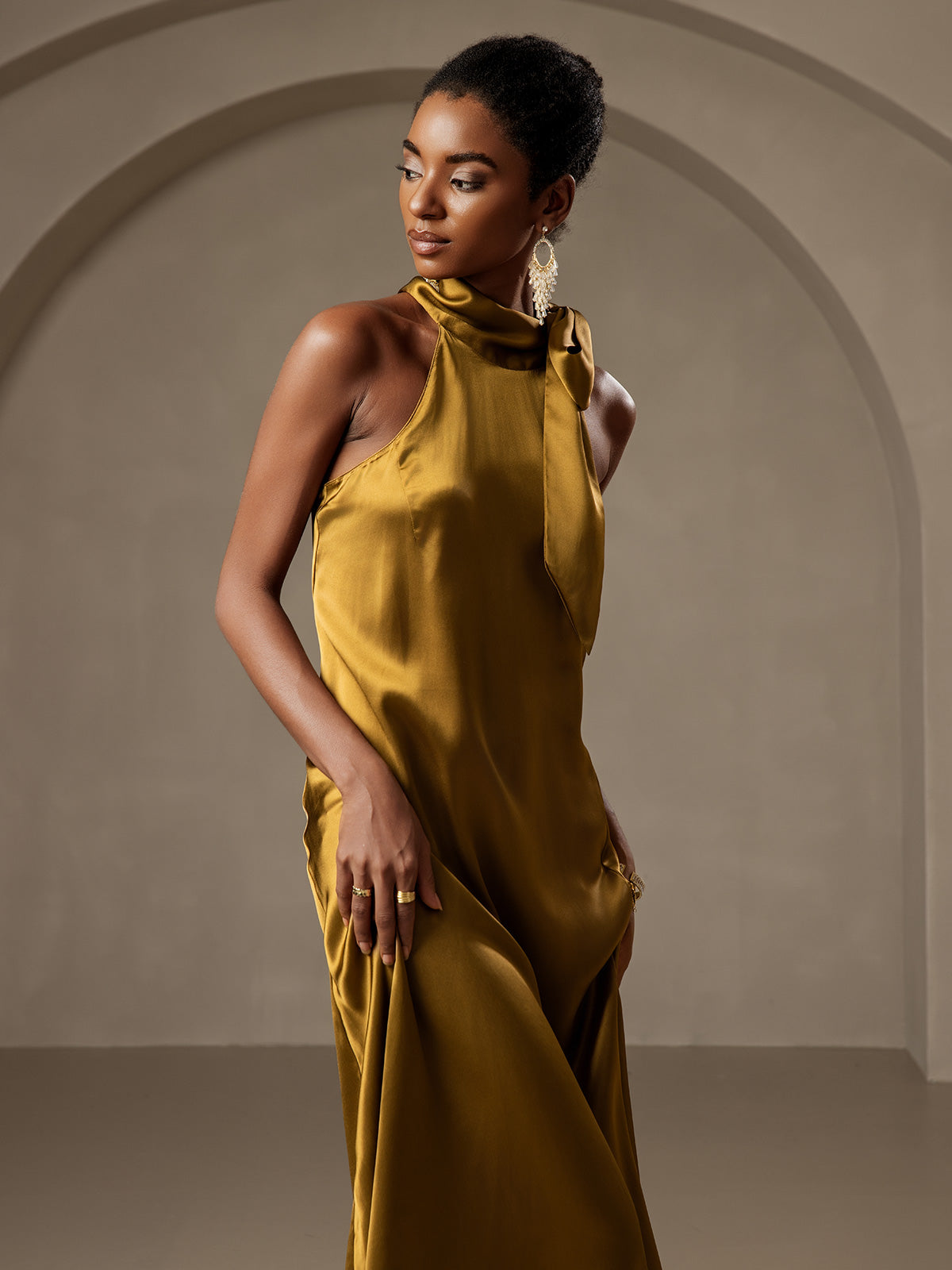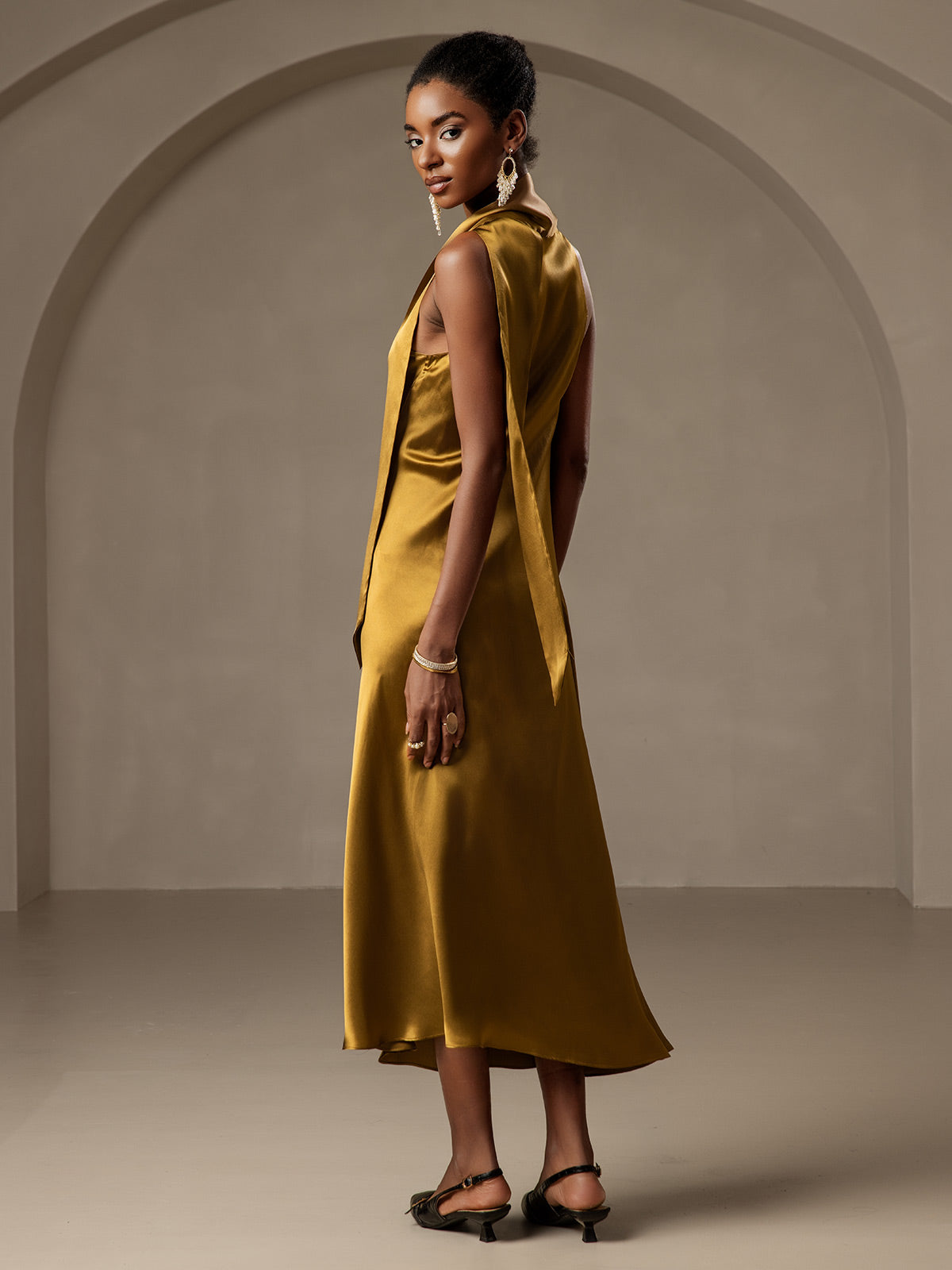 Such a beautiful dress! The silk is incredibly soft and flows gracefully with every movement. It flatters the body in the most natural way. I love how effortless yet polished it looks. One of my favorite pieces now!