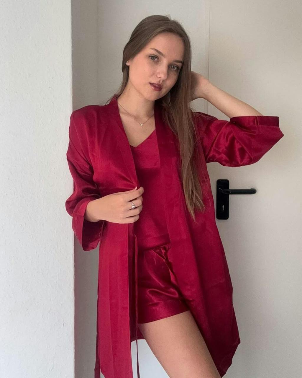 Wow, die weinroten Pyjamas fühlen sich seidig glatt an, sitzen perfekt, sind unglaublich weich und atmungsaktiv für einen angenehmen Schlaf, fallen wunderschön mit einem dezenten, luxuriösen Glanz und lassen mich so verwöhnt fühlen, dass ich definitiv ein weiteres Set in einer anderen Farbe kaufen werde.